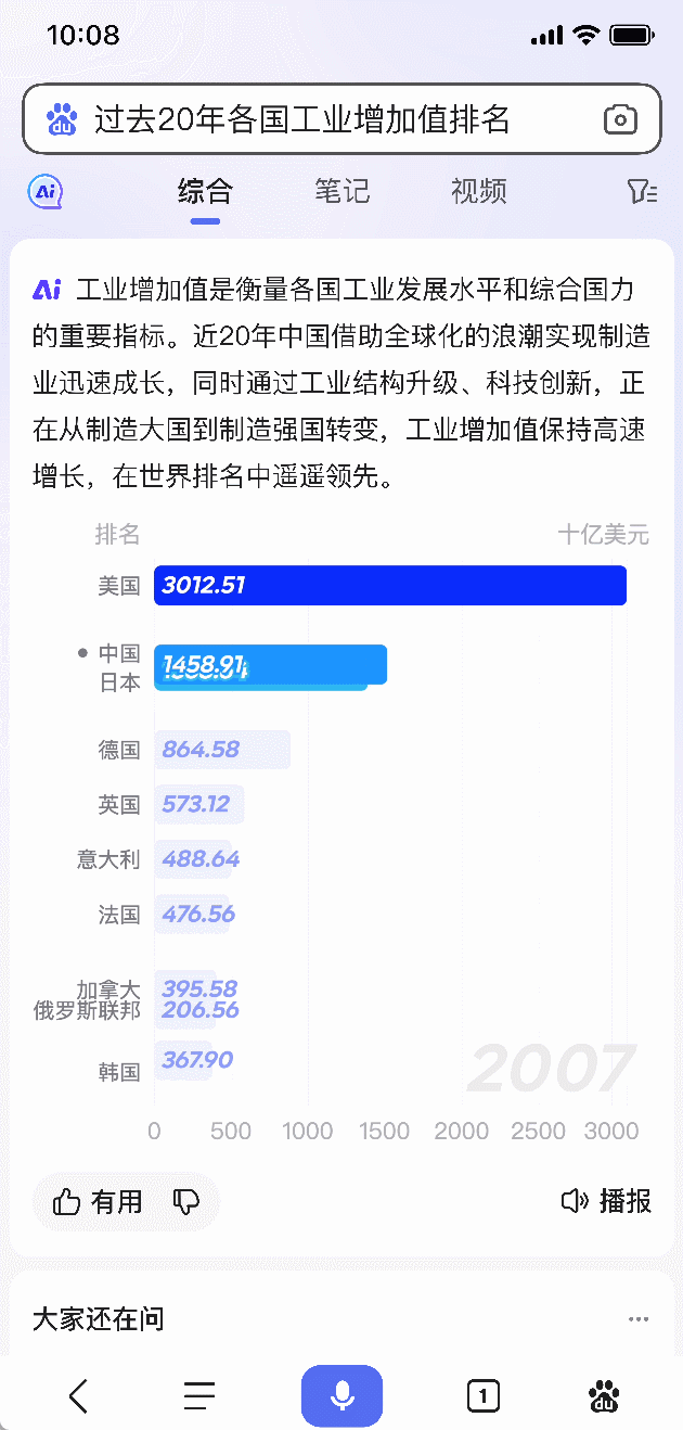 百度搜索是大模型落地的第一步,「新搜索」是全新的 AI 互动式搜索,它实现了三大重要提升:极致满足、推荐激发、多轮交互。当你在搜索框里输入问题,它不再是单纯的输出链接,而是生成完整的答案,并附带易于理解的图表。