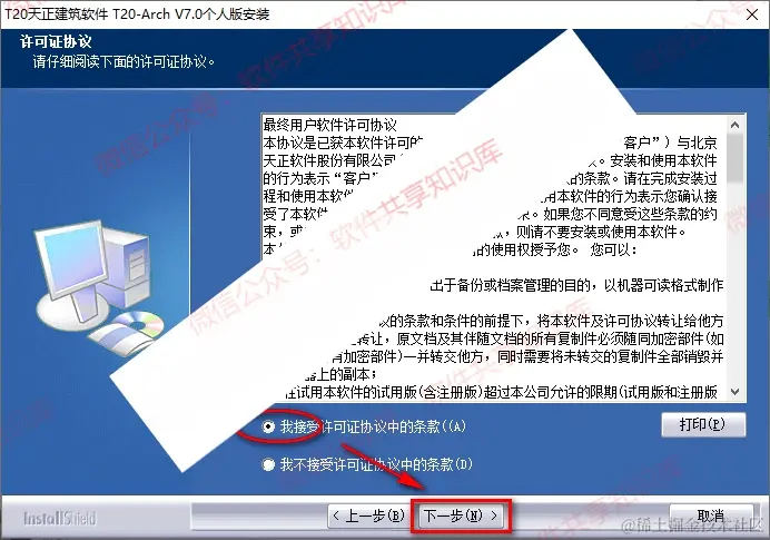 5.点击接受许可证协议中的条款(A),点击“下一步”。