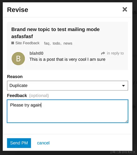 意思就是你可以通知用户对帖子进行修改,这个是用过 PM(用户消息发送的)。