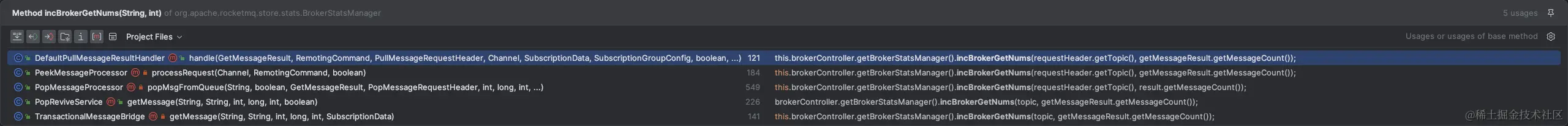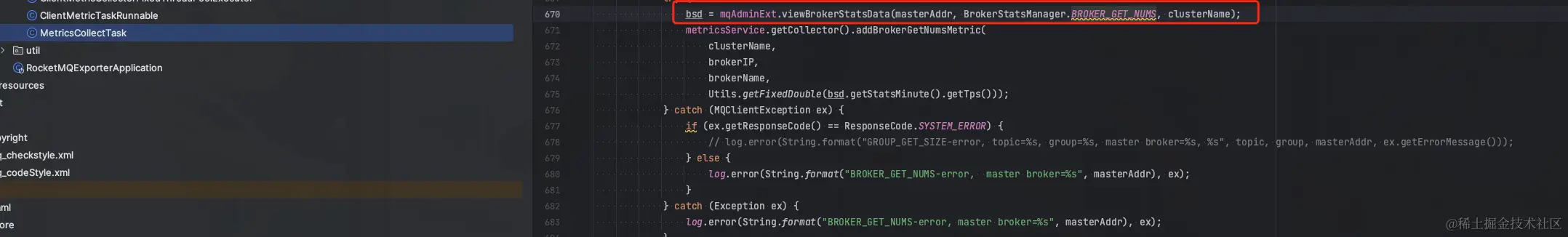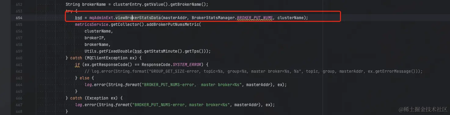 这里可以看到exporter主要是通过获取BrokerStatsManager.BROKER_PUT_NUMS这个指标来上报broker TPS的