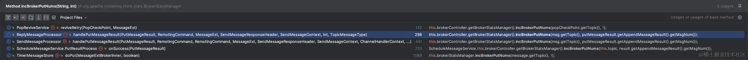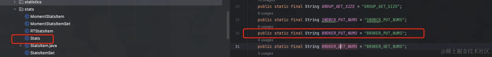 首先找到org.apache.rocketmq.common.stats.Stats#BROKER_PUT_NUMS