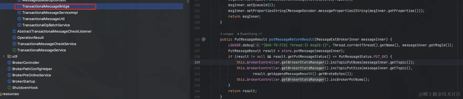 我们去RocketMQ源码看看这个指标是如何统计的
