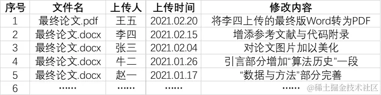 那么,GitHub就可以解决这样的烦恼。GitHub很专业的介绍网上也有,大家百度就可以;况且我也不专业,所以就通俗的说:GitHub是一个可以管理同一个文件的不同版本的仓库。或许这么说不太清楚,看了下面一张表,相信大家就了解了: