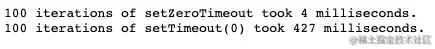 在浏览器中的打印结果大概是这样的,和规范一致,第五次执行的时候延迟来到了 4ms 以上: