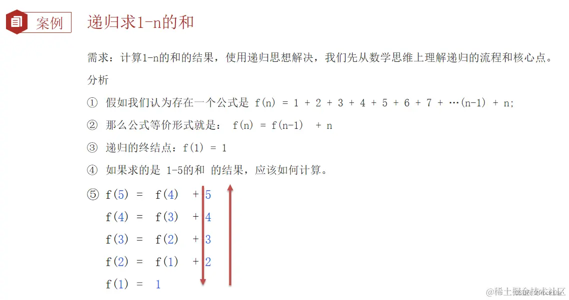 System.out.println("1-100的和是:" + f(100)); // 1-100的和是:5050