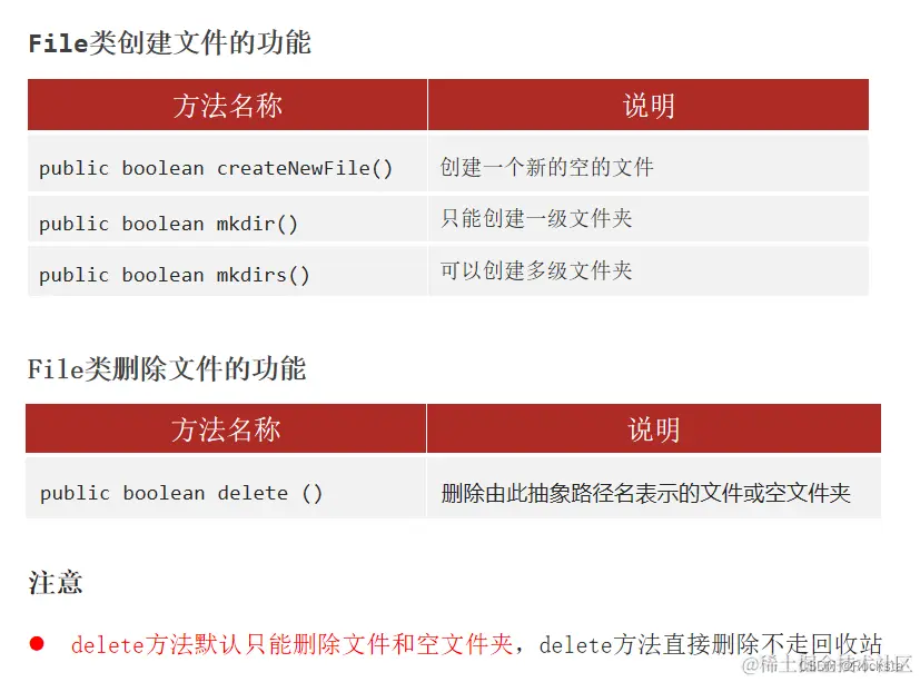 - public boolean delete() :删除由此File表示的文件或目录。 (只能删除空目录)