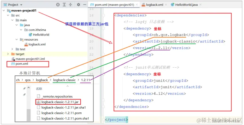 - 定位项目在本地仓库中的位置,由以上三个标签组成一个坐标