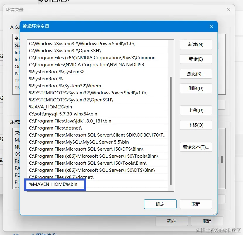 PATH 环境变量的值,设置为: %MAVEN_HOME%\bin
