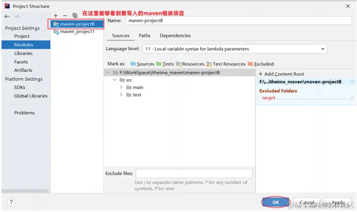 3、配置工程的编译版本为11 Maven默认使用的编译版本为5(版本过低)