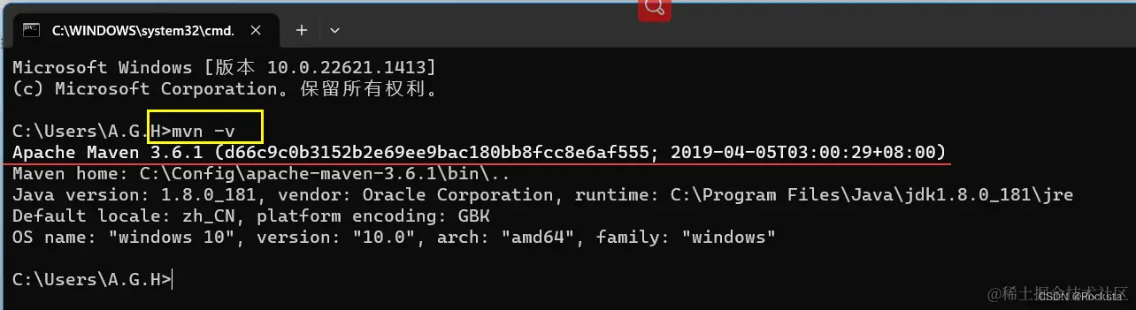 5、验证Maven是否安装,配置成功:mvn -v