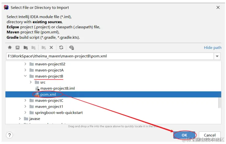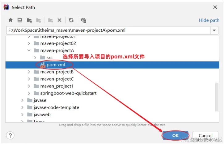 找到要导入工程的pom.xml