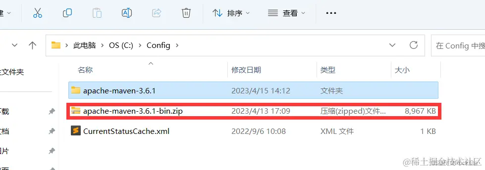 - Maven的安装比较简单,因为它是一个绿色版的软件,官方给我们提供Maven的安装包,就是这样的一个zip包,将其存放在没有中文不带空格的目录下