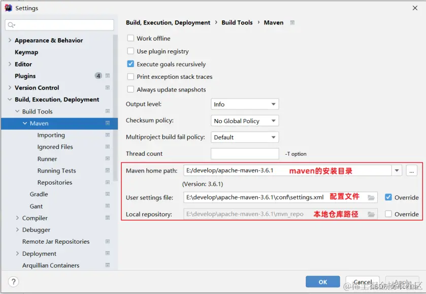 - Maven home path :指定当前Maven的安装目录