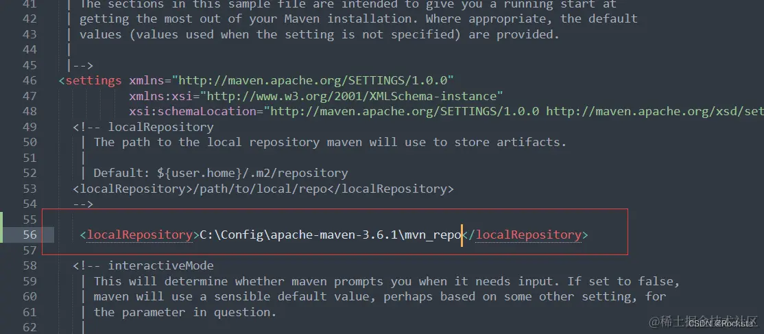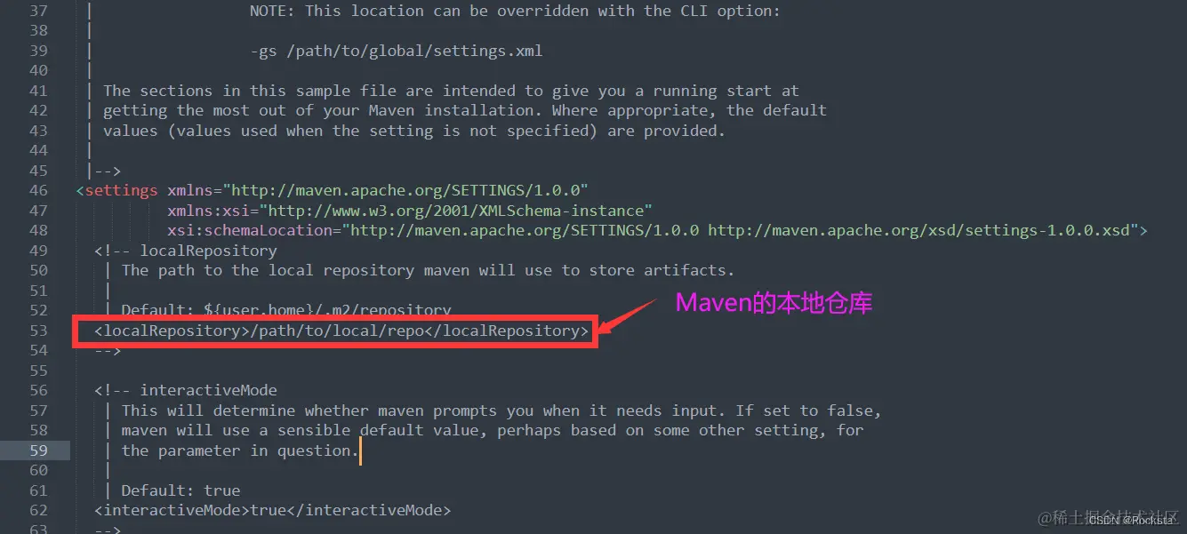 1). 打开Maven的配置文件,即 settings.xml文件,定位到 53 行