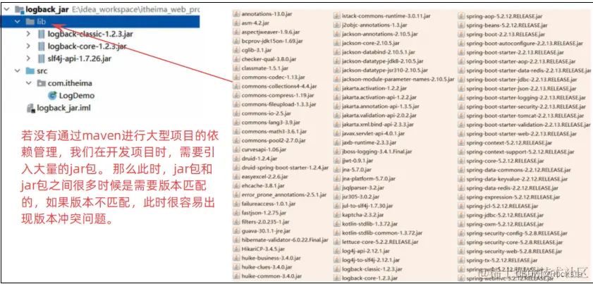 - 项目当中依赖的资源,只要指的是jar包,通过Maven还可以避免依赖jar包的冲突问题。