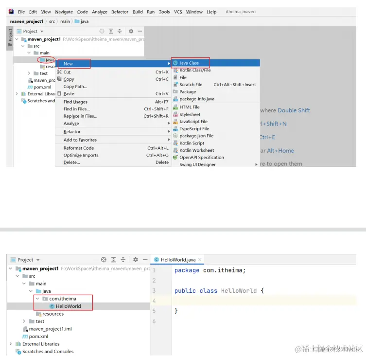 4、在Maven工程下,创建HelloWorld类