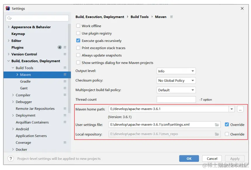 2、设置IDEA使用本地安装的Maven,并修改配置文件及本地仓库路径