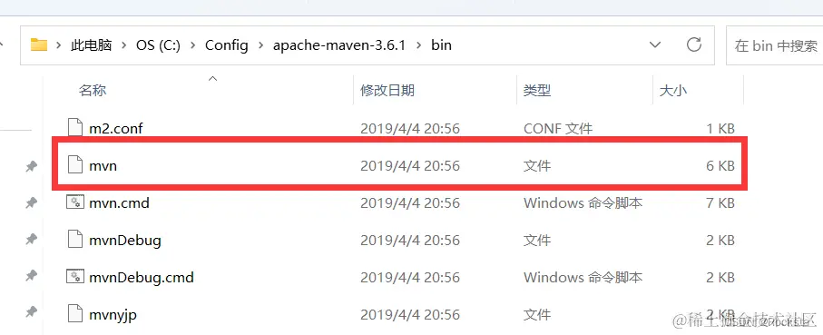 - bin目录:存放的是可执行文件,我们在后面要用到Maven当中的一些指令,比如我们要进行项目的编译,测试,打包,那其实都要去执行Maven当中的指令,那运行呢就是mvn这个指令。