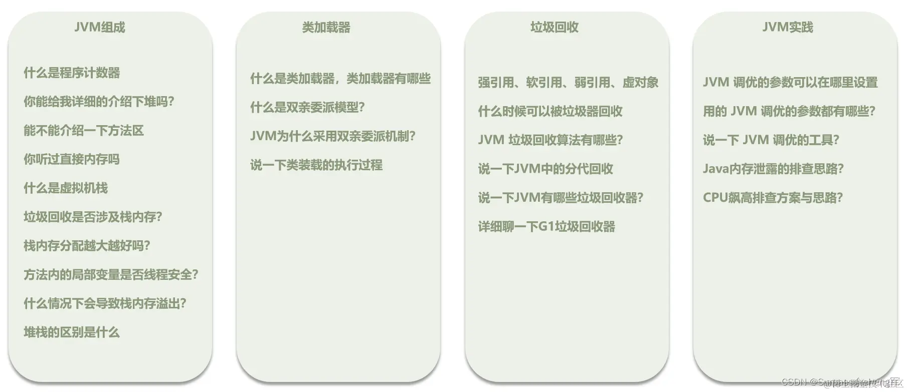 - 而 JVM 的优化问题主要在线程共享的数据区中:堆、方法区(因为你创建出来的这个对象,放在堆里了,那线程一线程二都可以访问到,包括方法区里这些类的信息也是多个线程大家都能访问到)。