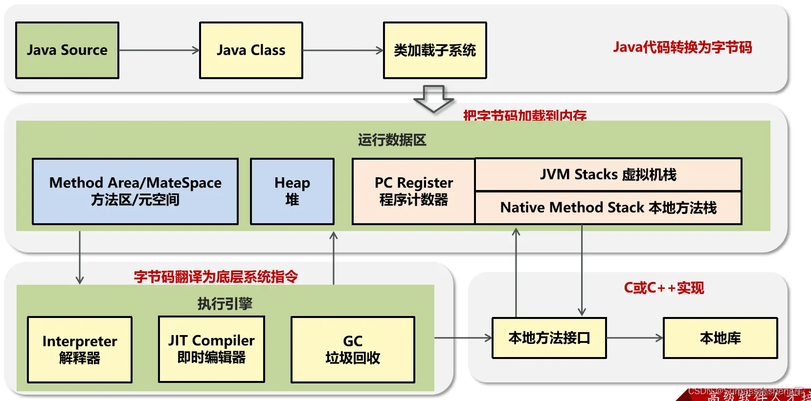 JVM是 Java Virtual Machine Java虚拟机的缩写,是Java程序的运行环境(Java二进制字节码的运行环境)。它的作用是将Java程序编译后的字节码转换为机器码并执行。