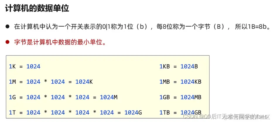 - 数据在计算机中存储的最基本单位是字节