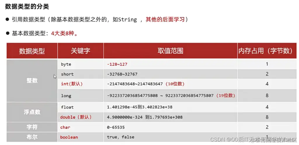 数据类型作用:定义变量的,约束变量存储数据的格式。