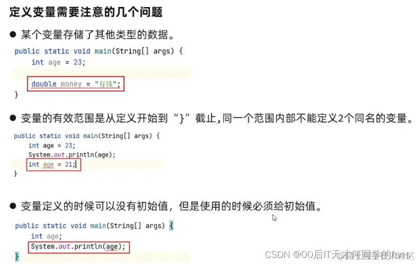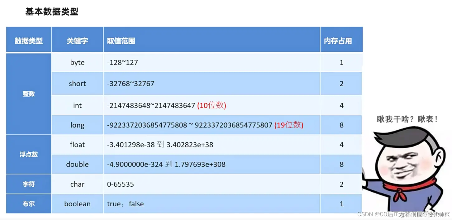 //掌握使用基本数据类型来定义不同的变量