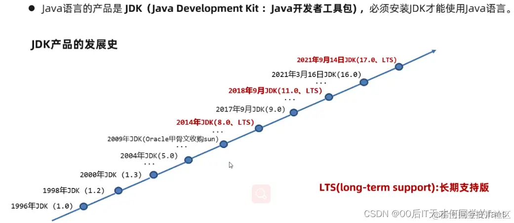 - LTS(long - term support)版本:长期支持版,JDK8、11、17