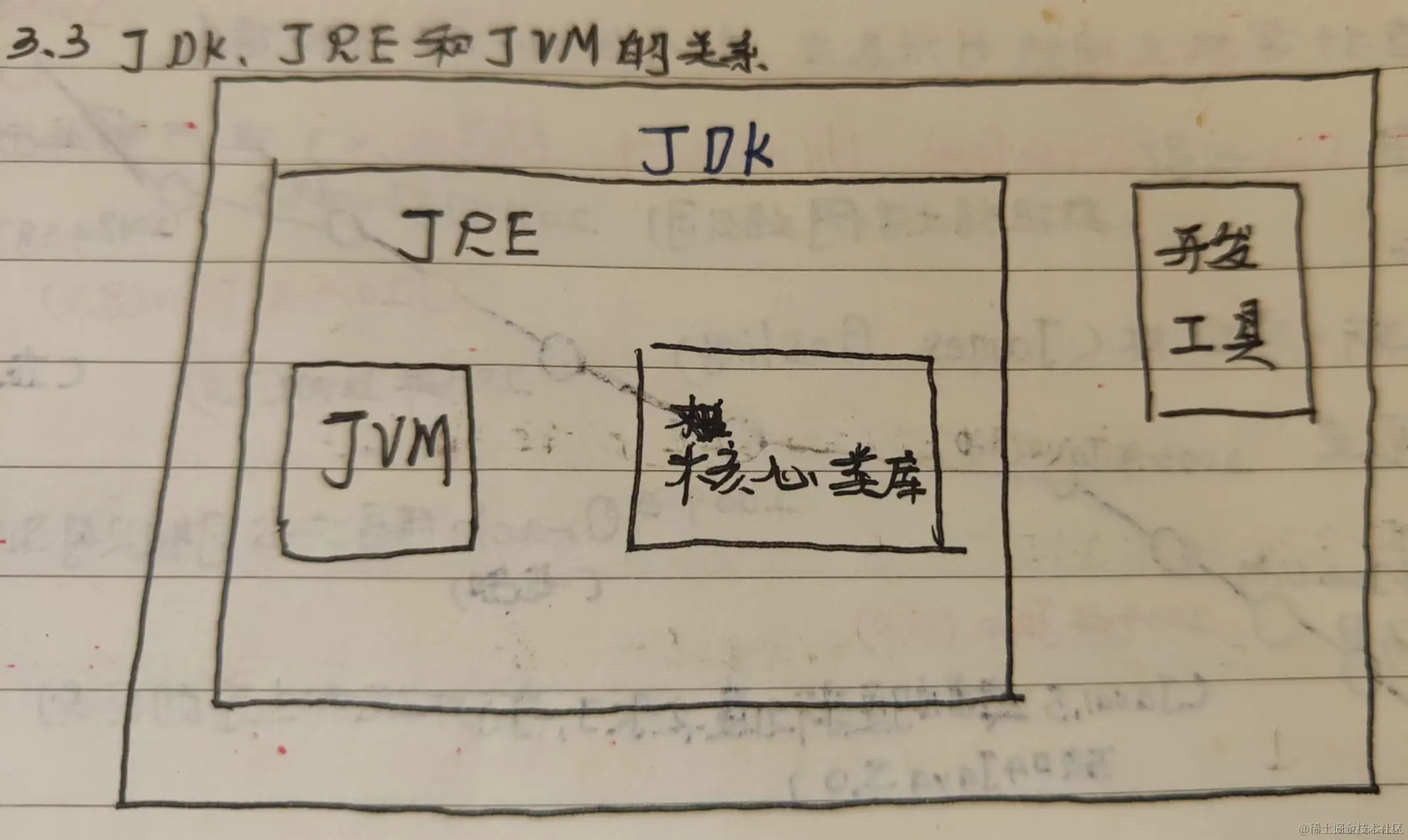 - JRE(Java Runtime Environment):是Java程序运行时环境,包含了JVM(Java虚拟机)和运行时所需要的核心类库。