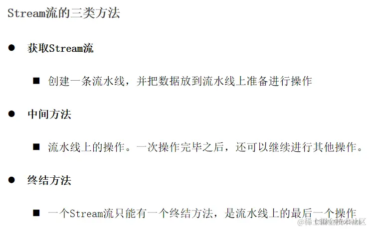 是先得到集合或者数组的Stream流(就是一根传送带)