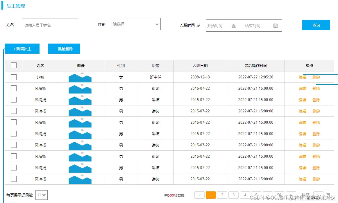 - 员工管理页面原型:(前面已完成tb_emp表结构设计)