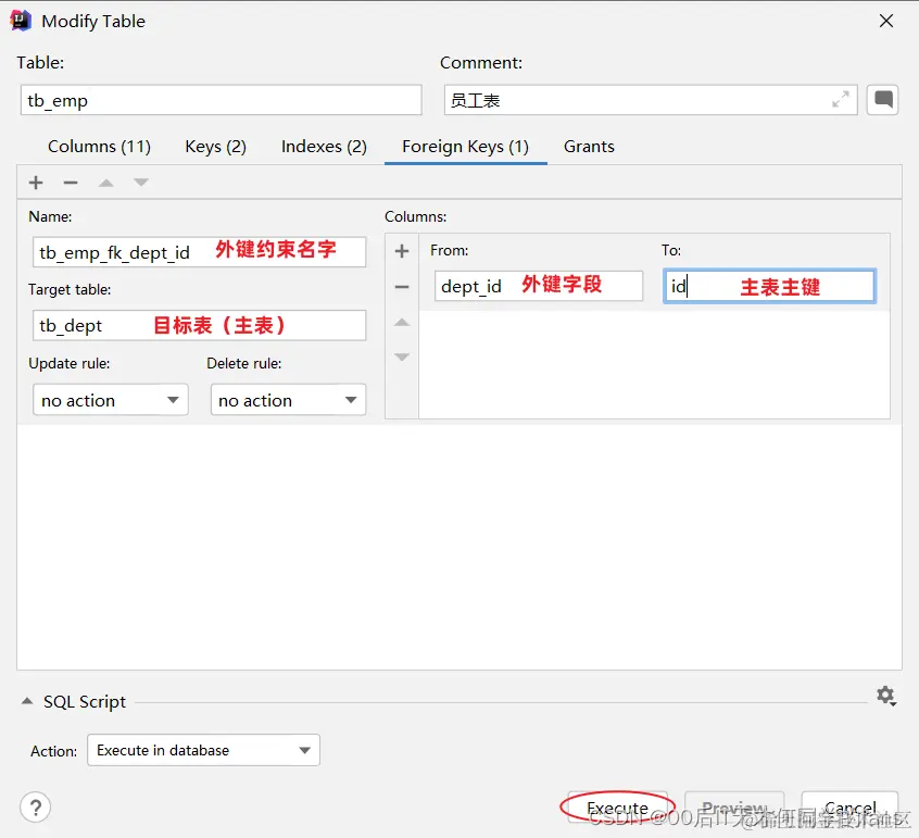 - 对应的关键字: foreign key
