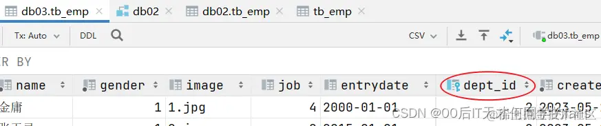 dept_id int unsigned comment '归属的部门ID', -- 员工的归属部门,关联部门的id即可