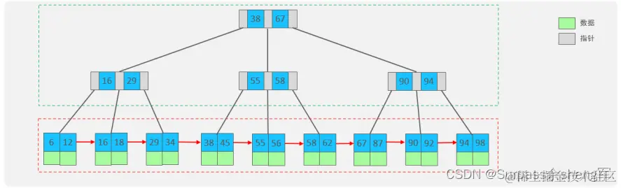 - 所有的数据都存储在叶子节点上,并且底层已经实现了按照索引进行排序,还可以支持范围查询,叶子节点是一个双向链表,支持从小到大或者从大到小查找
