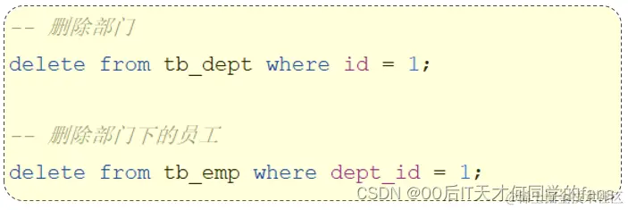delete from tb_dept where id = 1; -- 删除成功