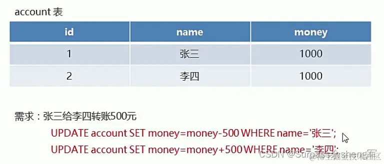 -- 这就是事务,要么同时成功,要么同时失败。