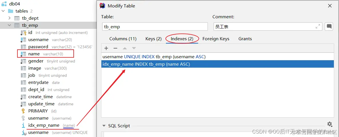 create index idx_emp_name on tb_emp(name);