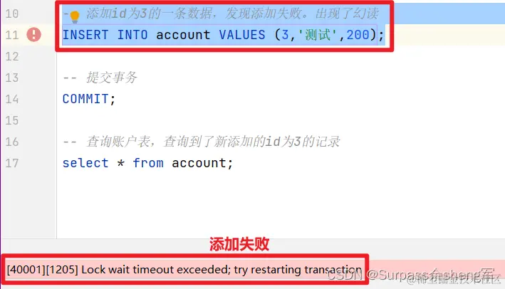 - 第2种情况:开启事务 => 执行SQL语句 => 失败 => 回滚事务