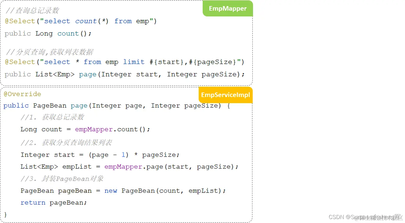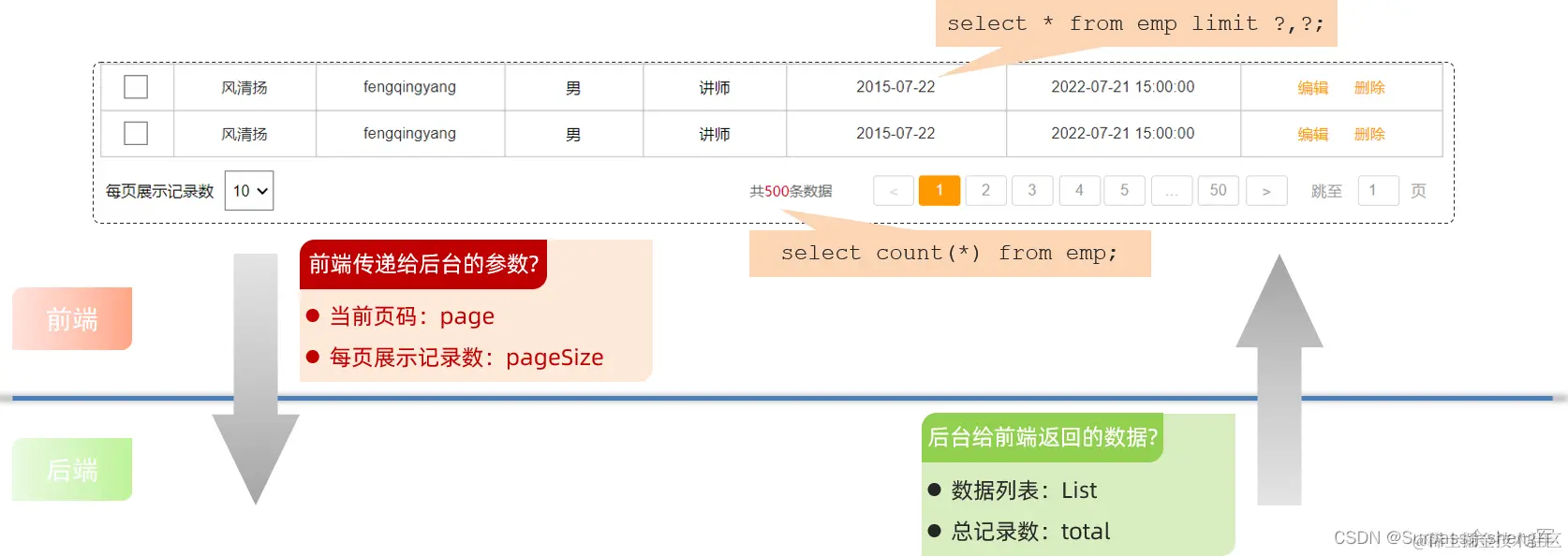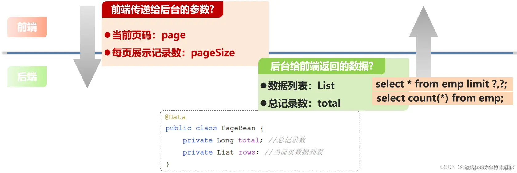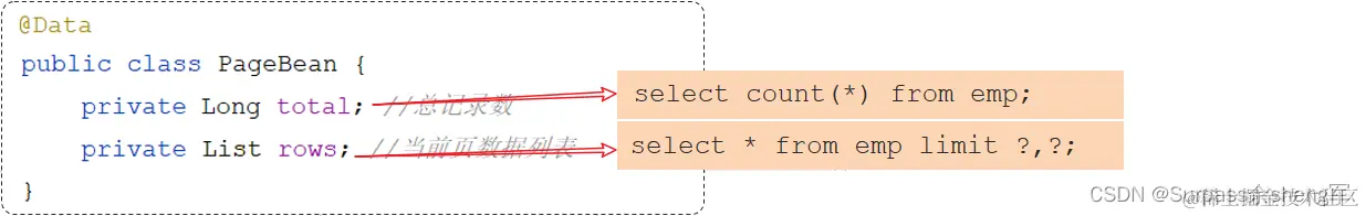 后台给前端返回的数据包含:List集合(数据列表)、total(总记录数)