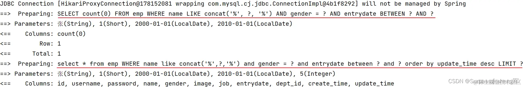 List<Emp> empList = empMapper.list(name,gender,begin,end);