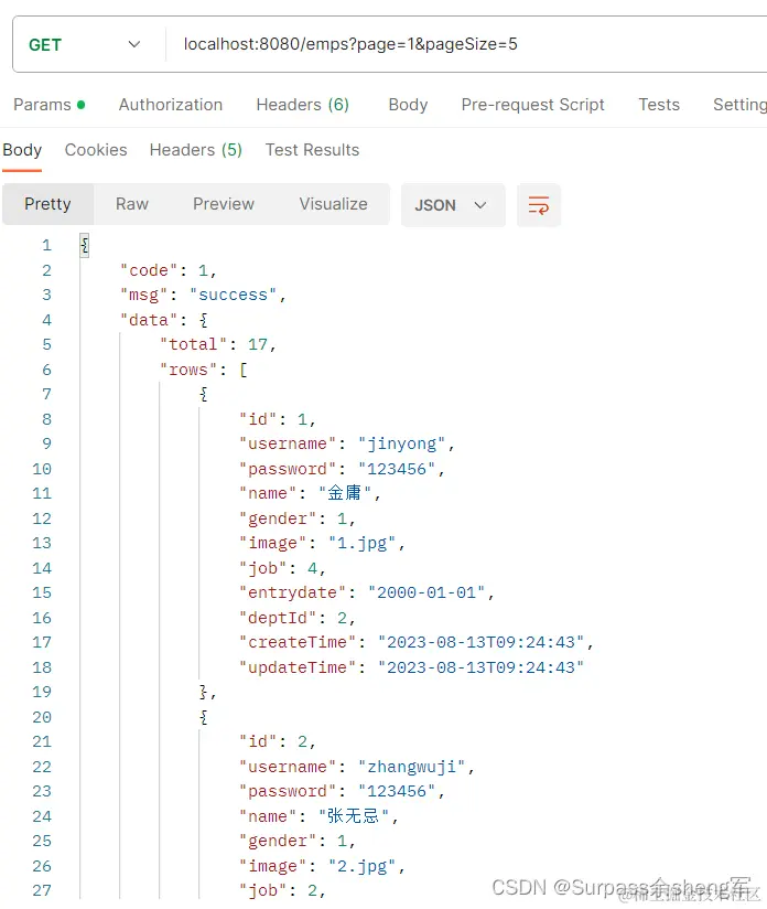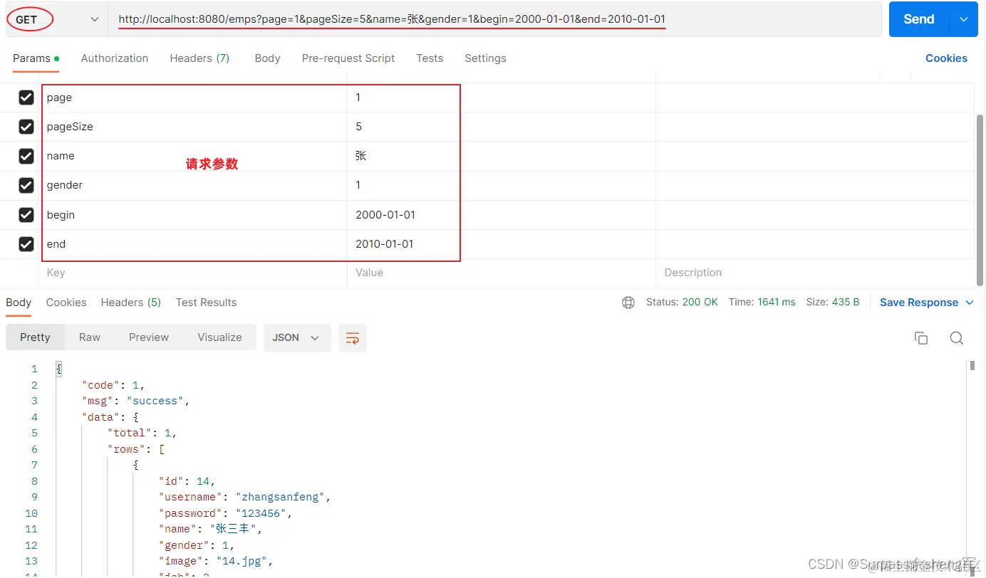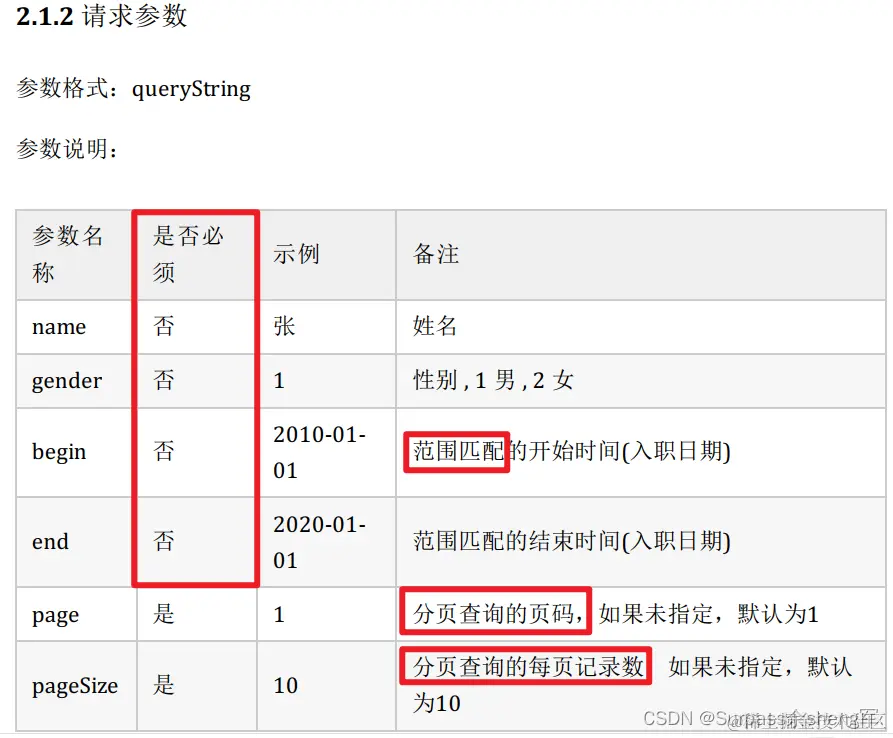通过查看接口文档:员工列表查询