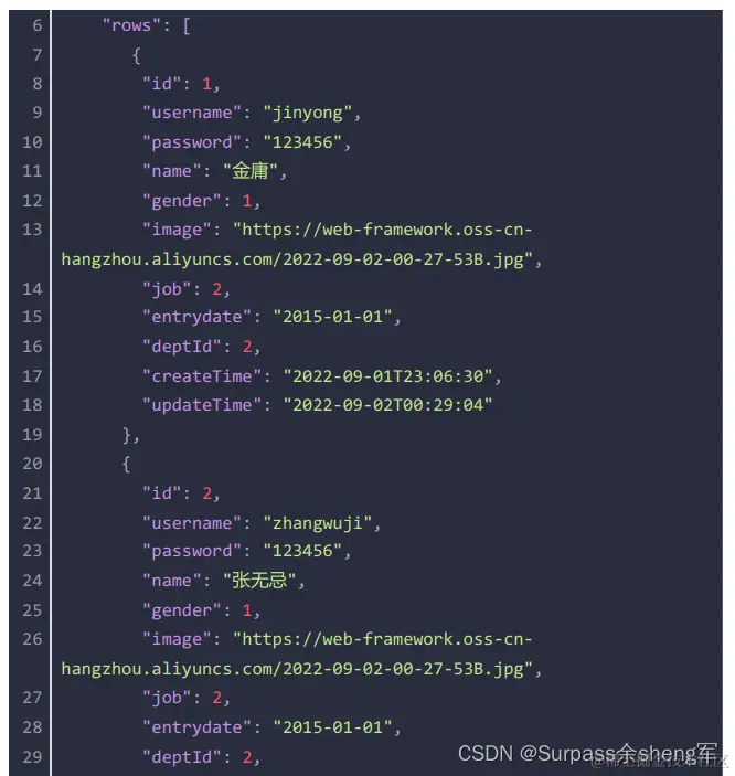 响应数据:json格式