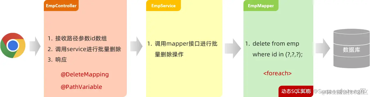 - 前端请求路径:/emps/{ids}