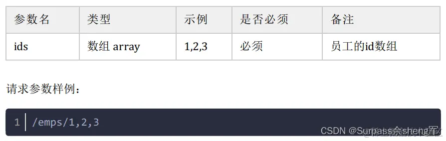 - 请求参数:路径参数 {ids}