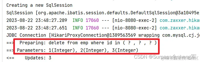 delete from emp where id in(?,?,?);