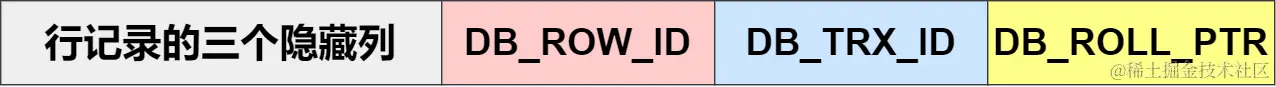 聚簇索引记录中跟事务相关的行隐藏字段或隐藏列,即行记录的三个隐藏字段: