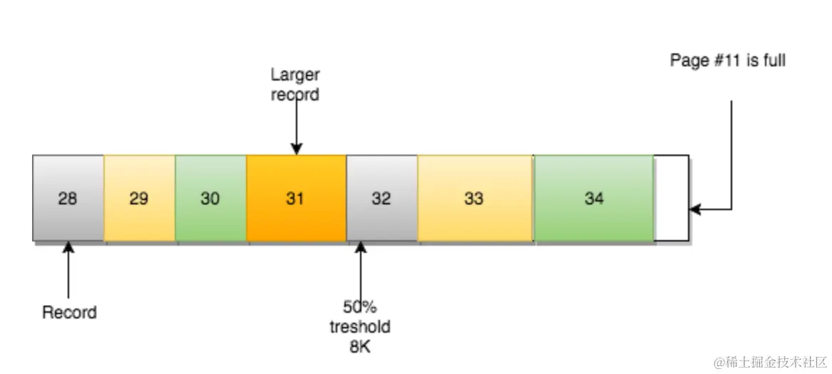 如果数据无法存放在当前页,那么将存放在下一个页中