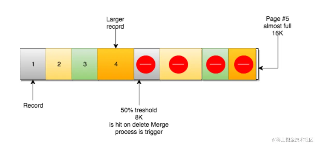 - Page5的一些数据被删除,并且空间降到了阈值之下