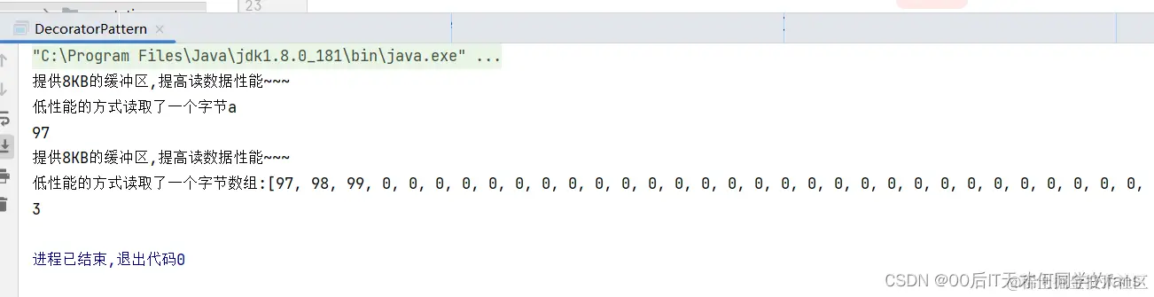 System.out.println("低性能的方式读取了一个字节数组:" + Arrays.toString(buffer));