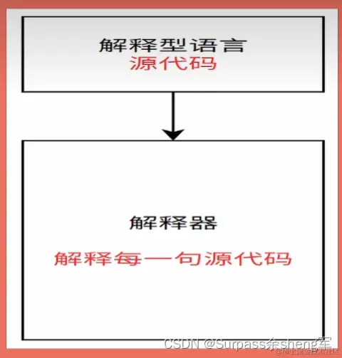 解释型语言:会通过解释器一句一句的将源代码解释成机器码并执行,而不是一次编译全部,边翻译代码边执行。 一般解释型语言开发效率比较高,但是执行速度比较慢,常见的解释型语言有Python、JavaScript和PHP都是解释型语言。===> 在执行期才动态解释(解释型语言是将翻译的过程放到执行过程中,这就决定了解释性语言注定要比编译型语言慢上一大截)
